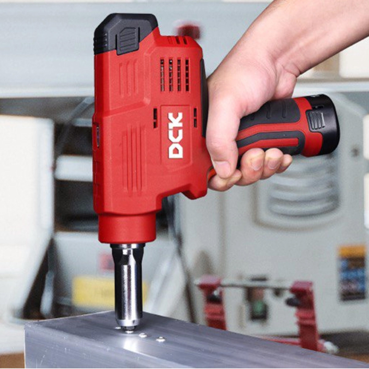 Аккумуляторный заклепочник DCK KDPM50 - значительно упрощает и ускоряет установку вытяжных заклепок. Работает с компактными аккумуляторами с напряжением 10.8 В. Обладая небольшими габаритами и весом, данный инструмент легко заменит ручной заклепочник в вашем наборе инструментов.